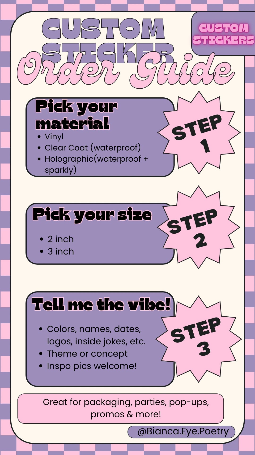 ✨Please note: Custom sticker pricing reflects the time and care it takes to bring your vision to life !